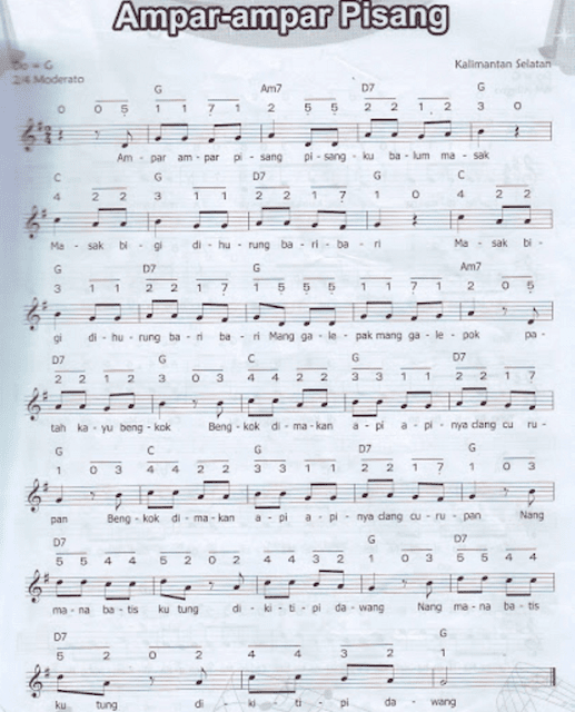 Lagu Ampar-Ampar Pisang Beserta Not Angka Dan Not Balok Ampar ampar pisang menceritakan tentang makanan khas kalimantan selatan yang amat disukai.