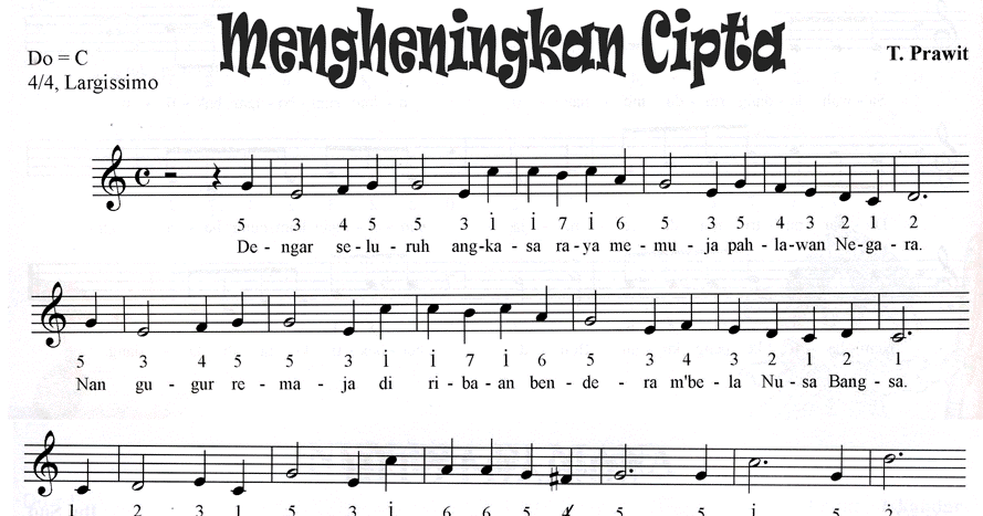 Lagu Mengheningkan Cipta Beserta Not Angka Nya Selain hal itu, sejarah yang terekam lannya dari lagu ini, bahwa lagu ini diciptakan oleh seorang yang bernama truno prawit.