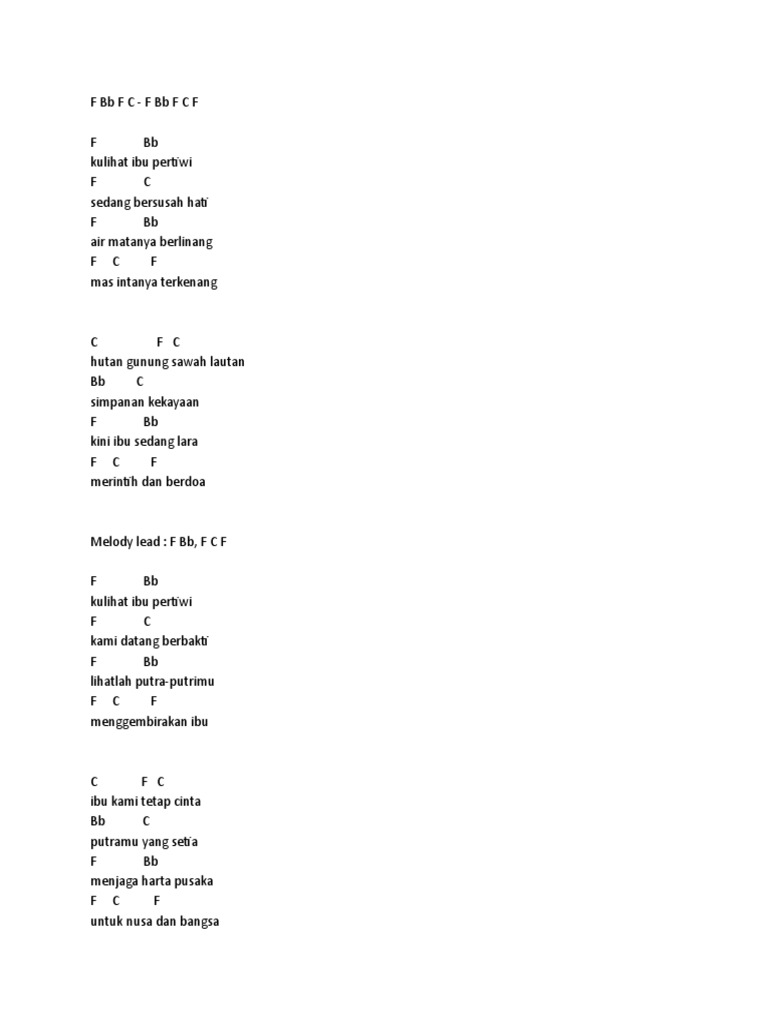 Not Angka Kulihat Ibu Pertiwi. Hutan gunung sawah lautan simpanan kekayaan kini ibu sedang ibu kami tetap cinta putramu yang setia menjaga harta pusaka untuk nusa dan bangsa. Kulihat ibu pertiwi sedang bersusah hati air matamu berlinang mas intanmu terkenang. G c ibu kami tetap cinta f c g.