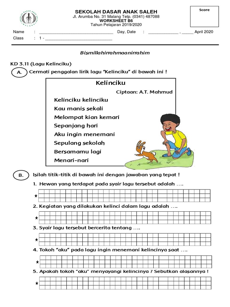 Not Angka Lagu Anak Kelinciku Lyric lagu lagu anak nusantara kelinciku.