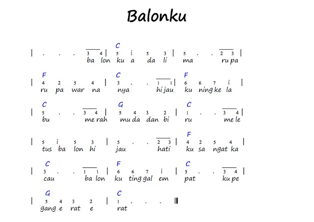 Not Angka Lagu Balonku Ada 5 Sehingga, lagu balonku sudah sangat melekat dalam ingatan kita dan pasti sudah sangat fahal dengan lirik lagu balonku.