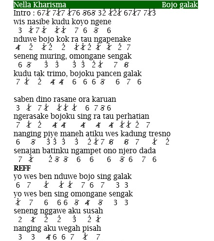 Not Angka Lagu Dangdut Pamer Bojo. Berikut chord c paling mudah dari lagu 'pamer bojo' em am yen mung gawe laraku. Kumpulan chord lagu siti nurhaliza termudah. Admin sudah persiapkan not angka lagu dangdut yang sangat populer di tahun ini, apa lagi kalau bukan lagu yang berjudul pamer bojo.