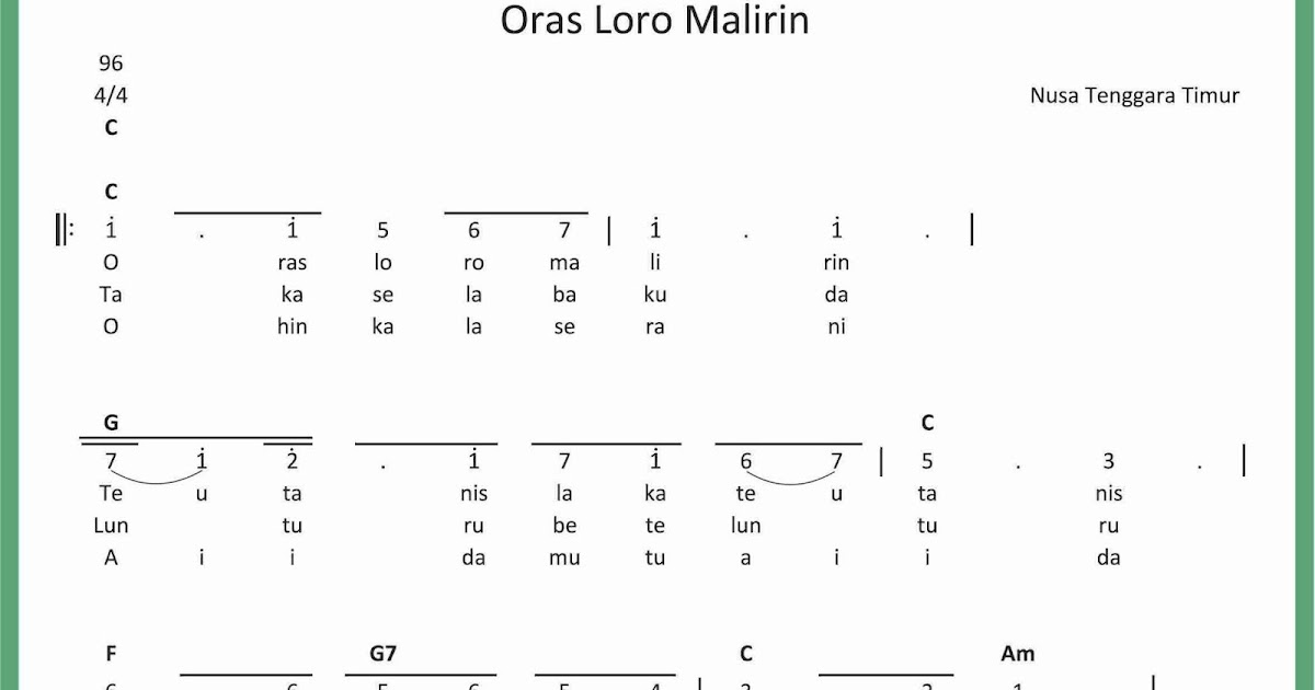 Lagu ini harus kita lestarikan karena termasuk lagu wajib nasional seperti yang kami utarakan tadi. Not balok dan not angka lagu merupakan hal yang sangat sering dicari oleh para pemain musik. Partitur not angka (chord dan notasi angka) + midi. Ada juga angka 0 sebagai tanda diam.