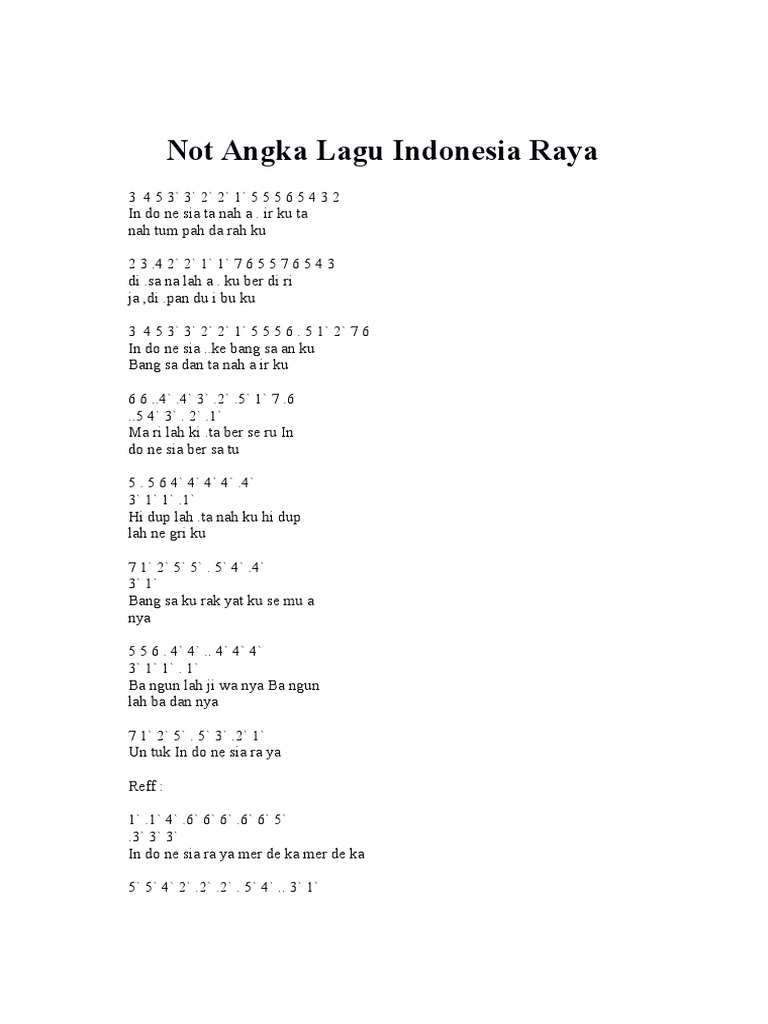 Download lagu terbaru, gudang lagu mp3 gratis terbaik 2020. Dibawah ini kami sajikan not angka lagu nasional yang diciptakan oleh w.r supratman yang berjudul indonesia raya. Do = bes 4/4 a indonesia tanah air beta pusaka abadinan jaya. Saya hanya sekedar share untuk bahan pembelajaran.