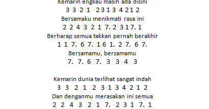 Not Angka Lagu Kemarin Gitar Not angka kemarin dari seventeen ini bisa kamu mainkan pada pianika, piano dan seruling.