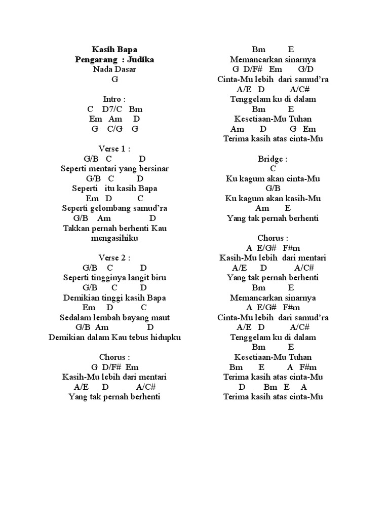 Posted by estherina octavia on 06.06 in h. Lirik lagu bapa terima kasih. Sungguh indah lagu rohani not angka 50 videos play all mix sungguh indah lagu rohani not angka youtube album full paduan suara jeriko hkbp perumnas tangerang duration 52 09 darmin sianturi st darantaja 421 177 views partitur lagu rohani pngline not angka lagu rohani bapa. Lirik kasih bapa oleh lagu rohani. Lagu rohani lirik lagu lagu kristen lagu baru. Bapa sayang padaku, vicia dan kesya. Seperti mentari yang bersinarseperti itu kasih bapaseperti gelombang samudratakkan pernah berhenti kau mengasihiku seperti tingginya langit birudemikian tinggi kasih bapasedalam lembah.